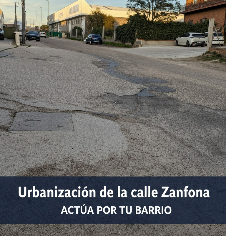 La calle Zanfona, una vía crucial que conecta la VA-20, el Hospital Río Hortega y la Carretera de Segovia, se encuentra en un estado de abandono catastrófico. A pesar de su intenso tráfico de peatones y vehículos debido a la multitud de negocios, un tramo vital carece de aceras e iluminación, con un pavimento destrozado que supone un grave peligro de atropellos, caídas y accidentes. La falta de papeleras provoca acumulación de basura y la oscuridad nocturna genera una profunda inseguridad. Es hora de que esta calle reciba las infraestructuras dignas que merecen sus vecinos y negocios.