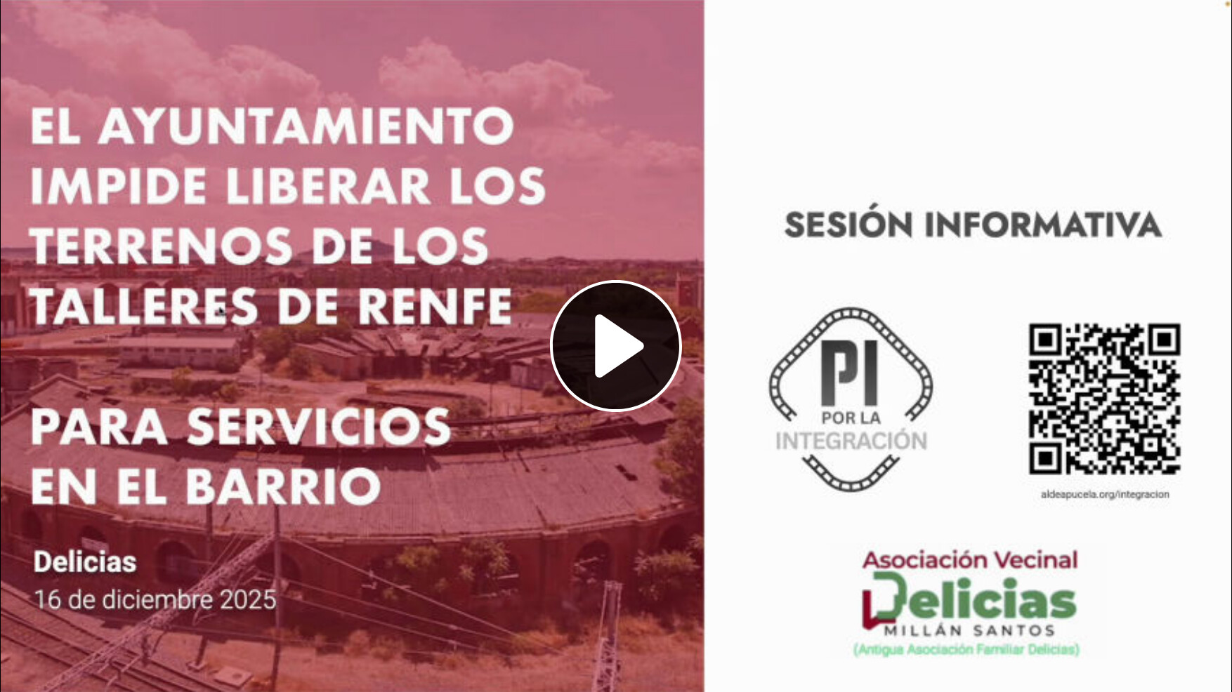 El próximo martes 16 de diciembre, tendremos un pequeño encuentro con la asociación vecinal Delicias “Millán Santos” en su sede para hablar sobre las actuaciones de integración ferroviaria en el barrio ahora paralizadas.