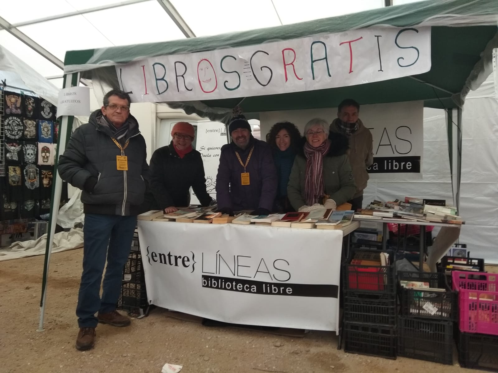 No teníamos libros, ni estanterías, ni presupuesto. Lo único que conseguimos fue que nos cedieran en abril de 2013 una sala en el Centro de Iniciativas Ciudadanas (en la calle Serranía de Ronda 27). Así que empezamos a dejar cajas de fruta con nuestro logo por las barras de los bares y comercios para que la gente depositara allí lo que quisiera donar. En siete meses reunimos 4500 ejemplares. Así, a base de voluntad, nació Entrelíneas . Hoy calculamos que por nuestras manos han pasado ya más de 55 mil volúmenes.