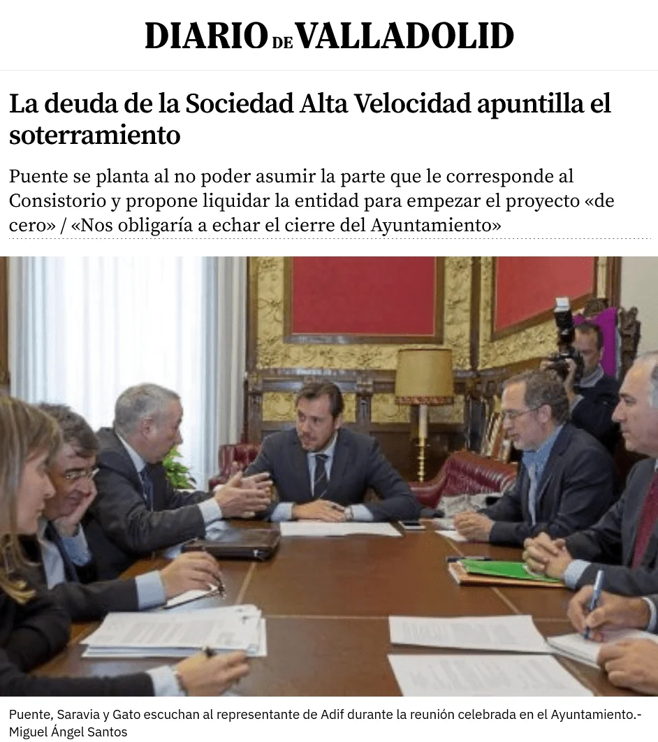 Desde la elección de Carnero, el Ayto. de Valladolid comienza a bloquear la integración en superficie acordada por la SVAV en 2017. Llega incluso a pagar un informe para contradecir el análisis de ADIF de soterramiento vs. integración en superficie.